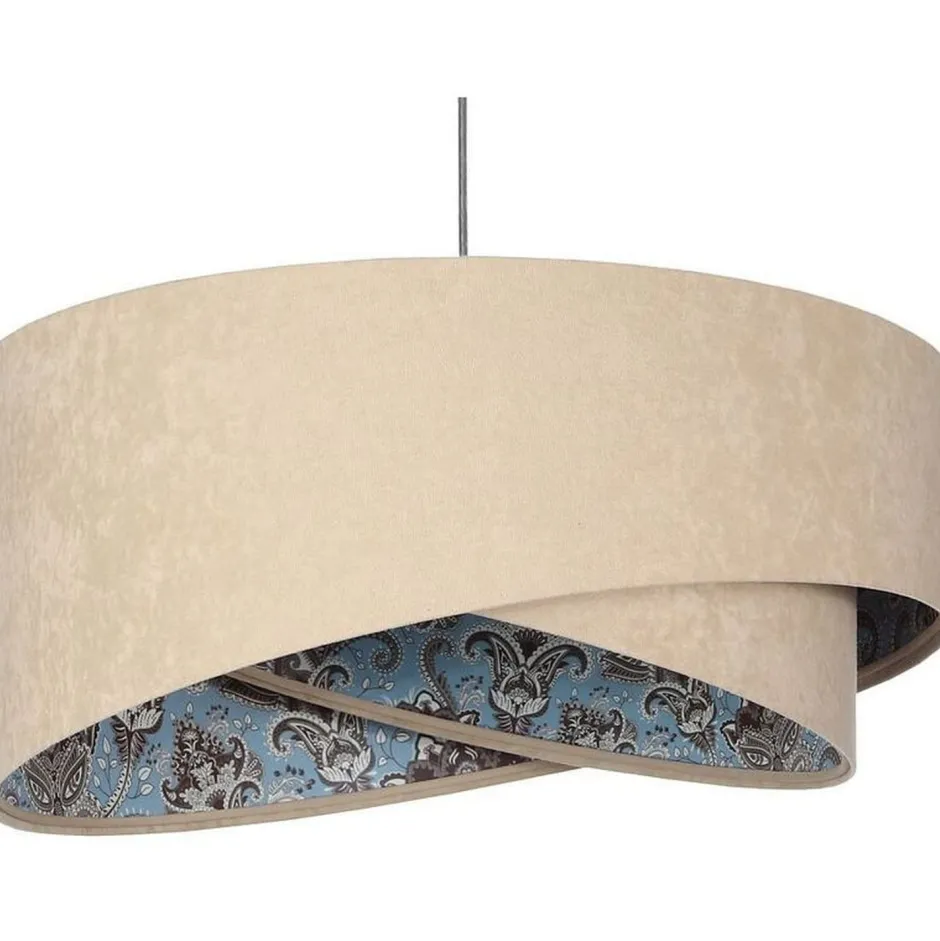 Elegante Pendelleuchte in Beige, Hellblau mit stilvollem Barock-Print für Wohnzimmer, Schlafzimmer und Esszimmer