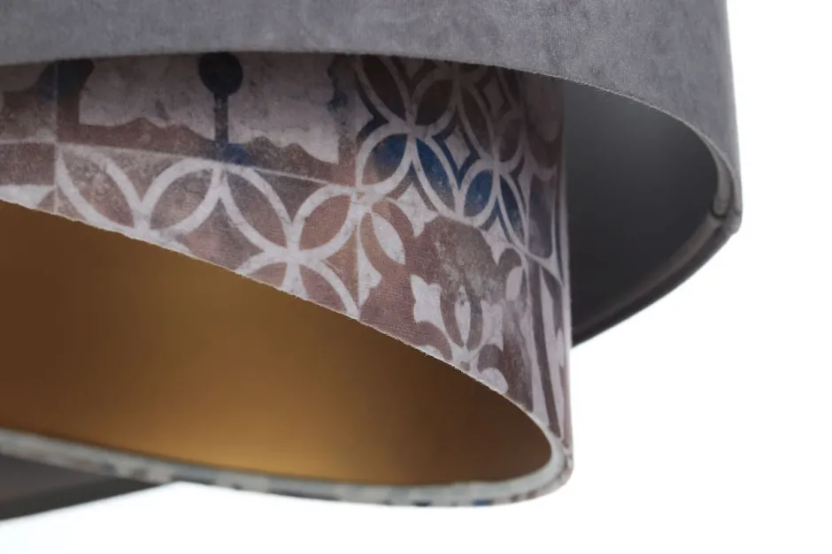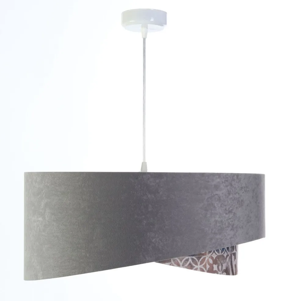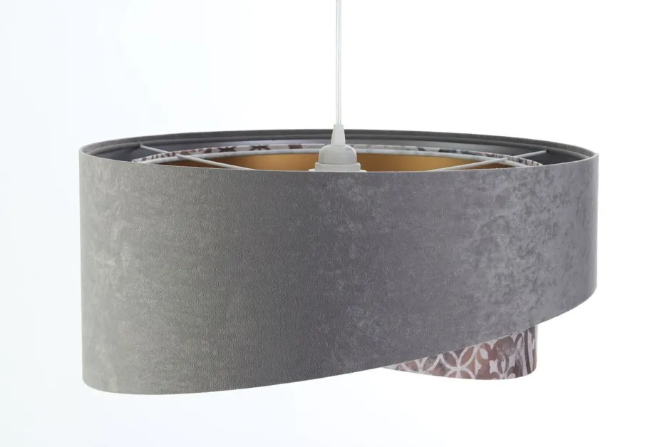 Elegante Pendelleuchte in Grau, Beige, Silber, Gold mit stilvollen Vintage Print für Wohnzimmer, Schlafzimmer und Esszimmer