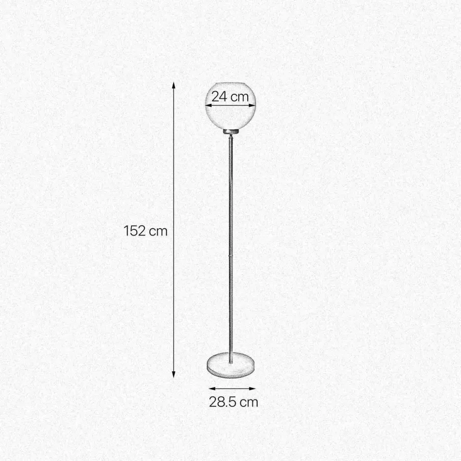 Kleine Stehleuchte für das Wohnzimmer aus massivem Messing mit Kugelschirm aus Glas