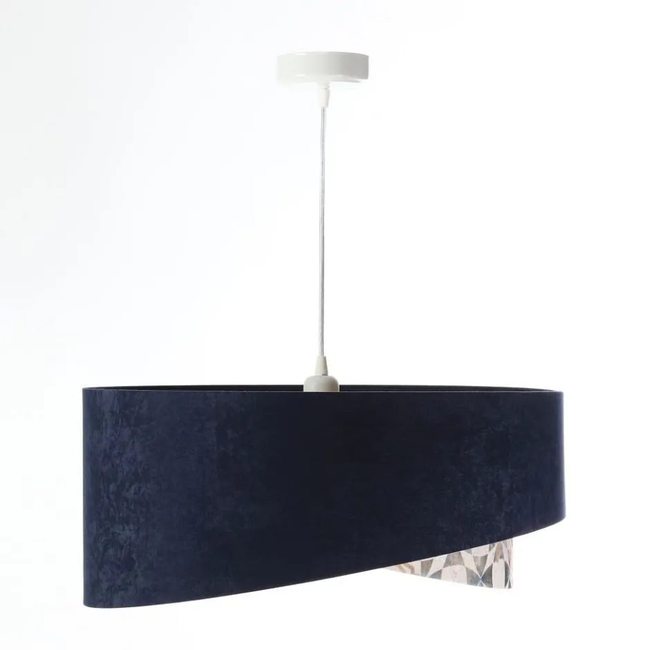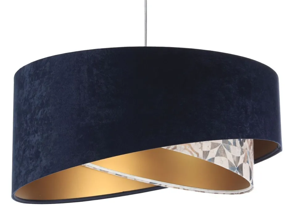 Elegante Pendelleuchte in Marineblau, Beige, Gold mit stilvollen Vintage Print für Wohnzimmer, Schlafzimmer und Esszimmer