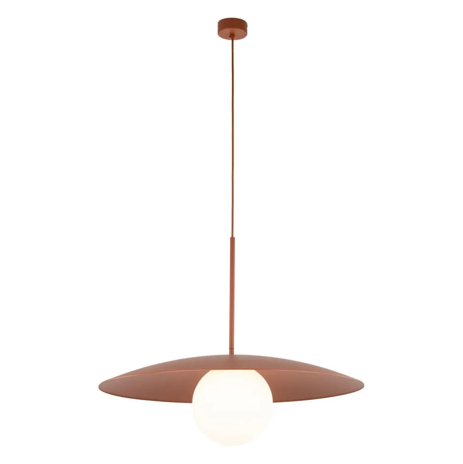 Zeitlose Pendelleuchte aus Metall und Glas in Ziegelrot
