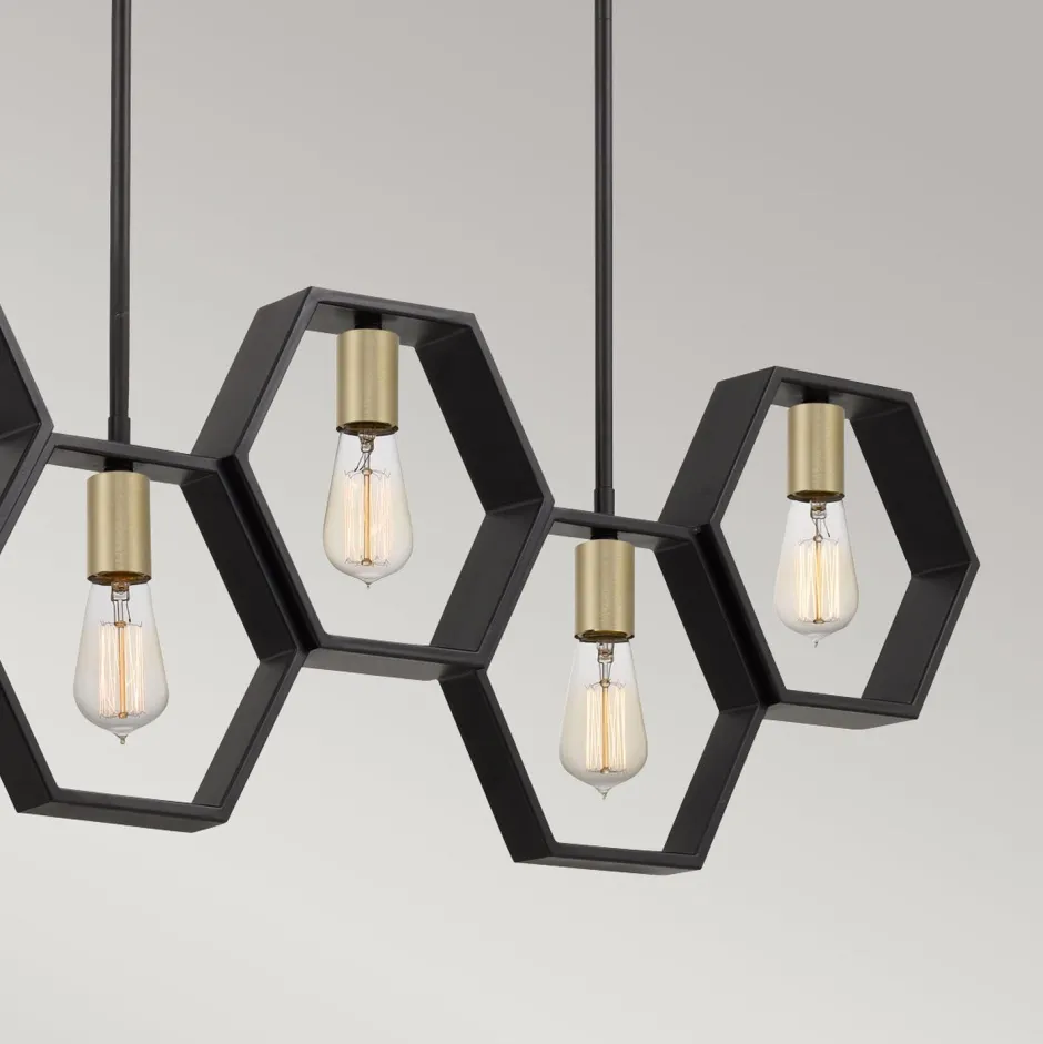 Die hexagonalen Schirme setzten einen außergewöhnlichen Akzent, der aus der langen Hängelampe einen besonderen Blickfang macht