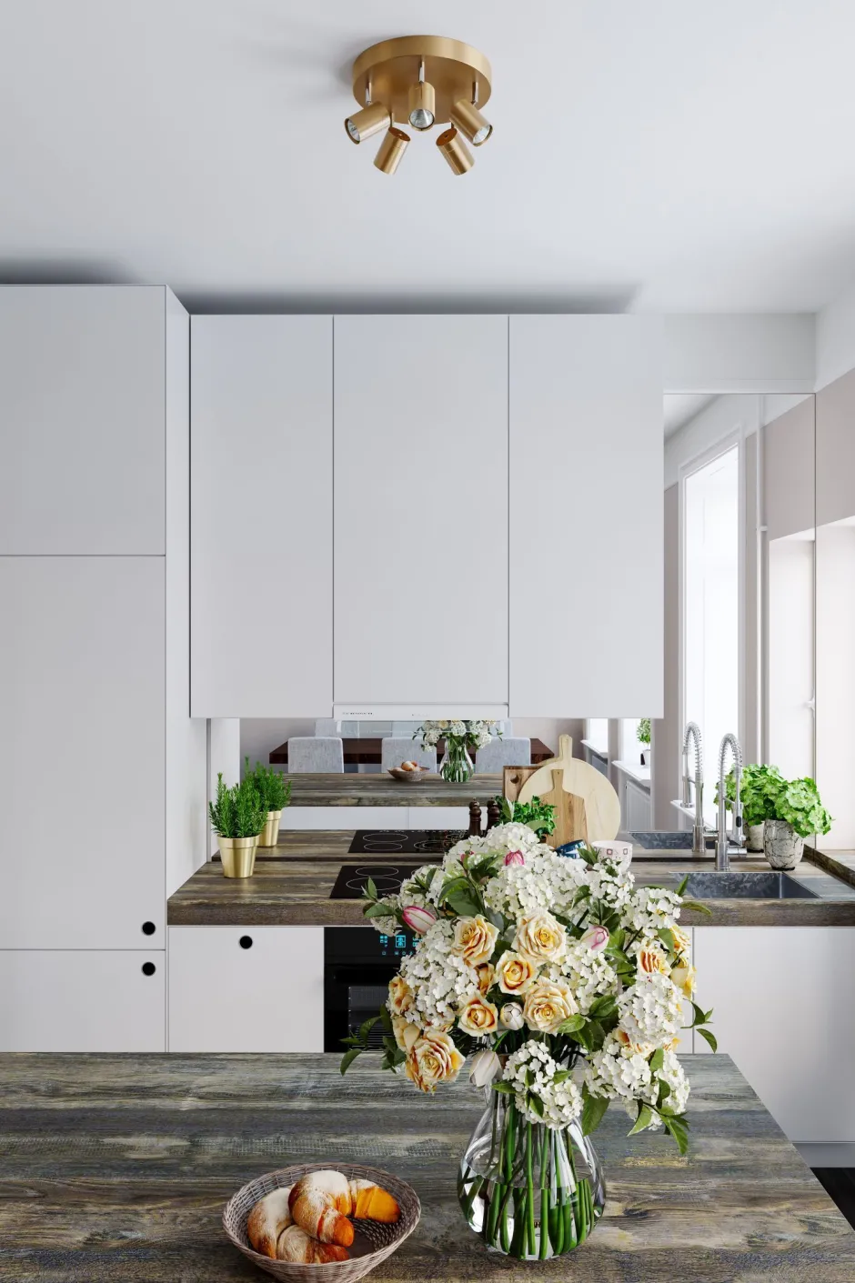 Kleiner Deckenstrahler in Gold für Wohnzimmer, Esszimmer, Küche und Flur