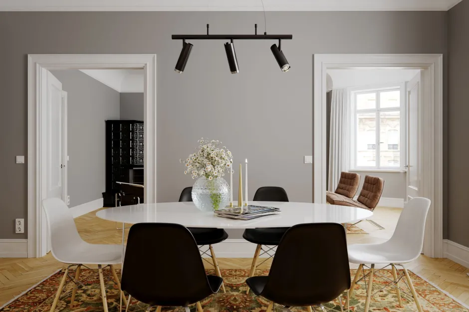 Die Hängelampe ist in der Höhe verstellbar: ideal über dem Esstisch