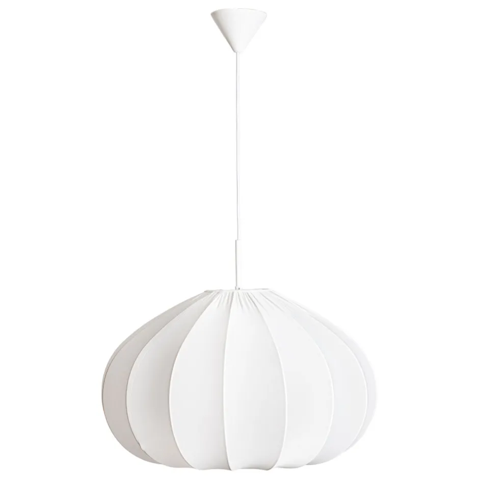 Wohnliche Pendelleuchte mit dekorativem Stoffschirm in Weiß