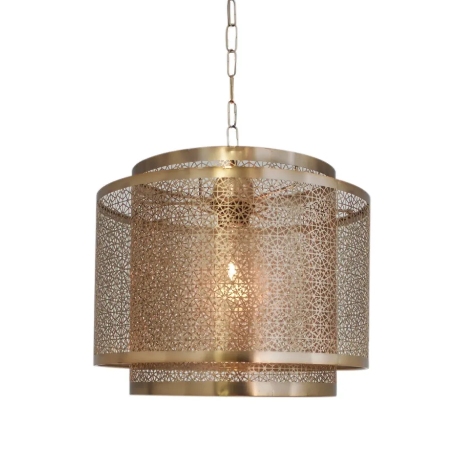 Elegante Pendelleuchte für Esszimmer und Wohnzimmer mit kunstvollem Doppelschirm aus Metall