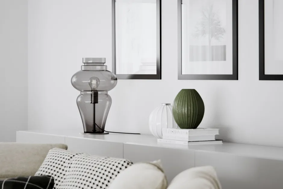 Dekorative Tischleuchte aus Rauchglas