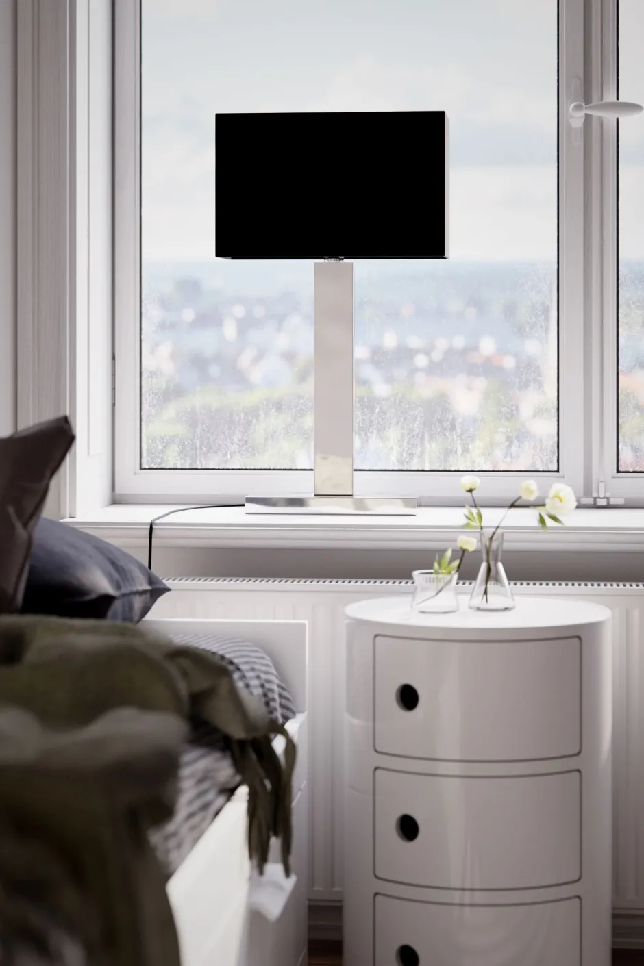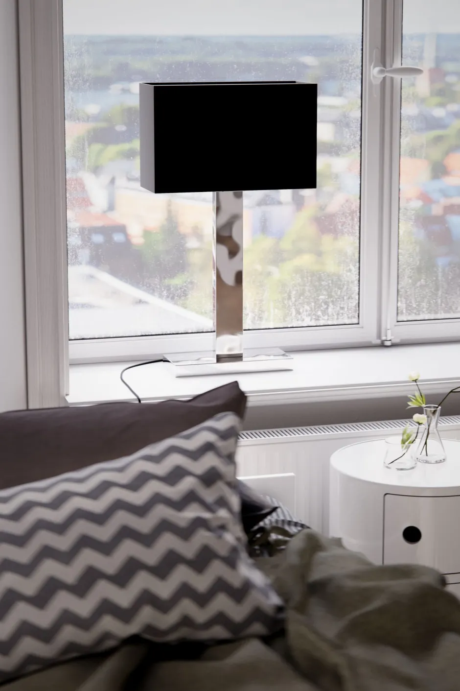 Das Licht wird durch den Lampenschirm blendarm gestreut – ideal als Fensterlampe, Beistelllampe und Nachttischlampe