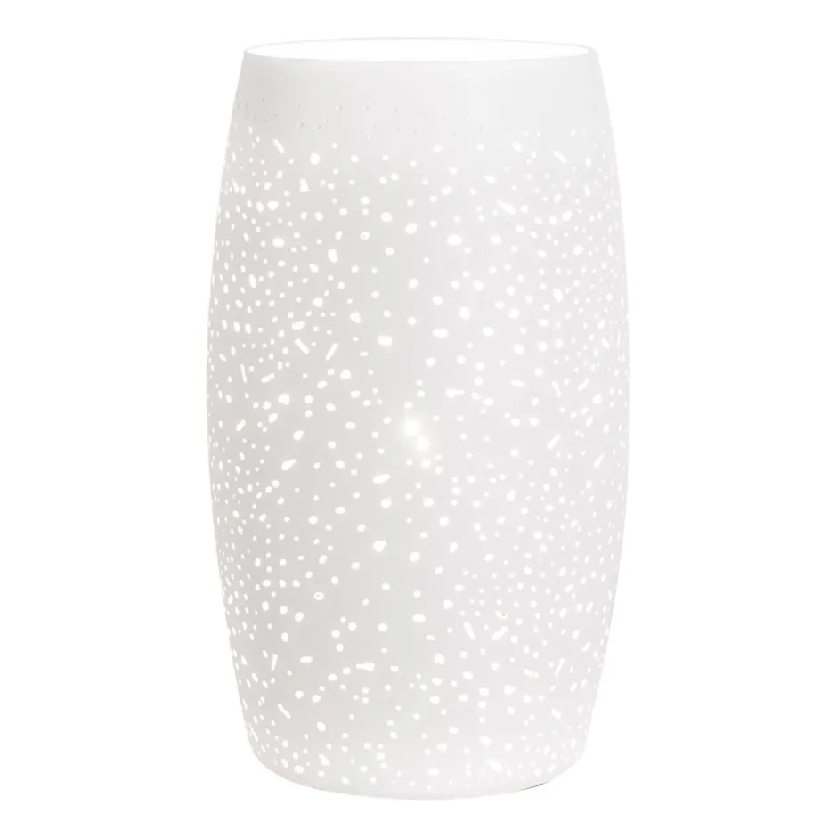 Kleine Tischlampe in Weiß mit außergewöhnlichem Lampenschirm für Schlafzimmer und Wohnzimmer