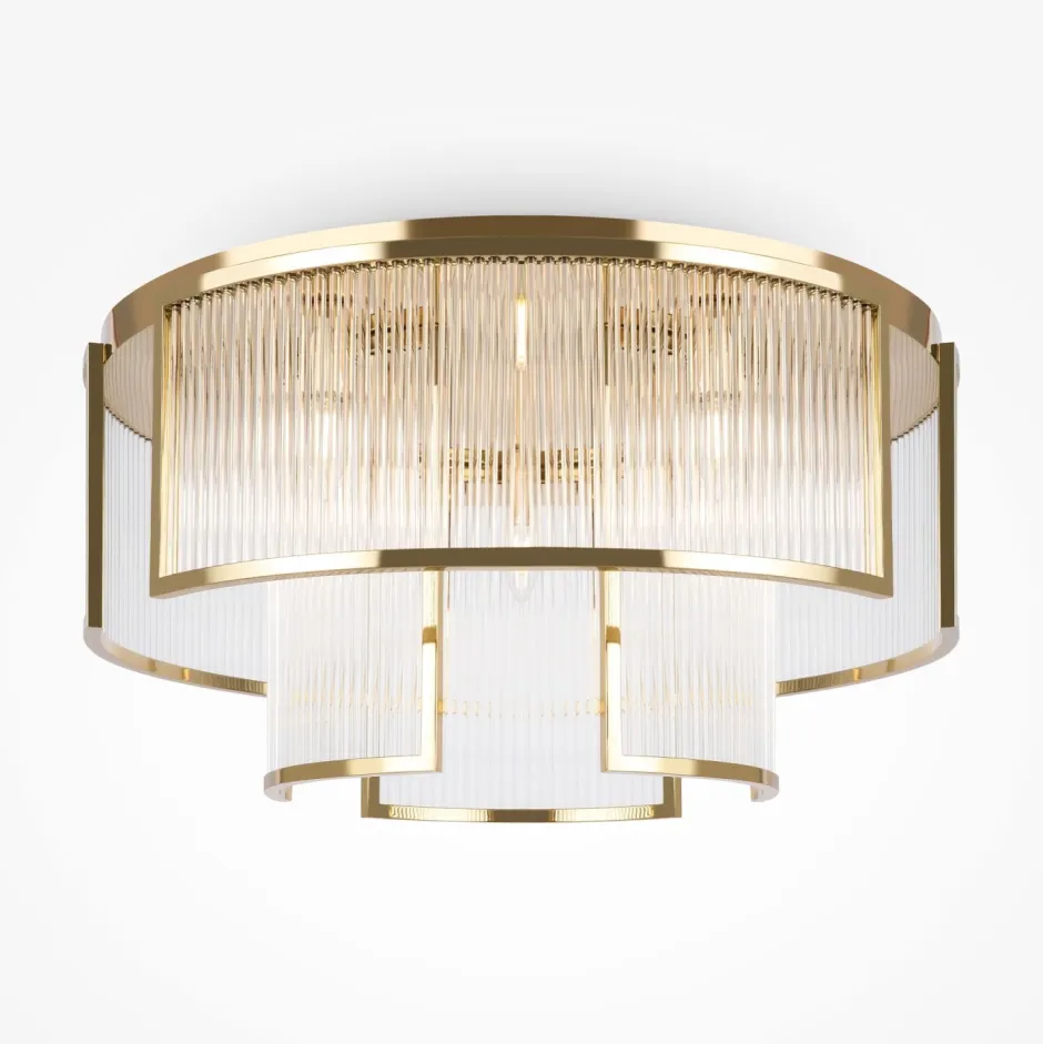 Kunstvolle Art Déco Deckenlampe aus Glas und Metall in Gold