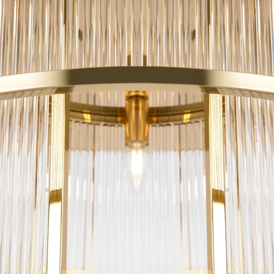 Der Lampenschirm besteht aus filigranen Glasstäbchen, die zu einer klassischen Jugendstilform zusammengefügt wurden – ein absoluter Blickfang für Flur, Wohnzimmer und Schlafzimmer
