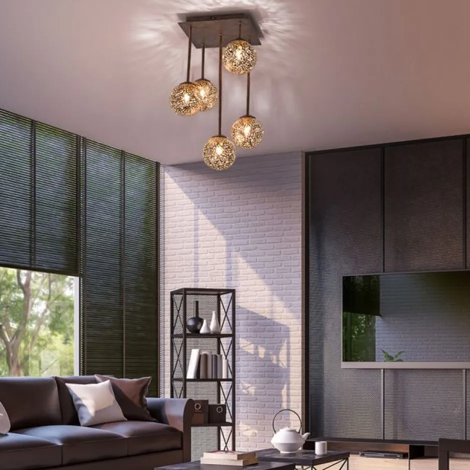 Rustikale Deckenleuchte aus Metall in Rostbraun und Gold