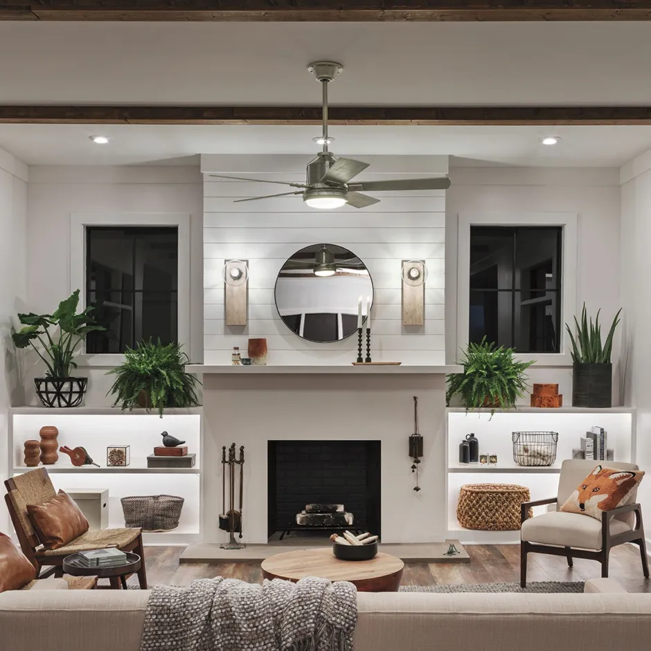 Der Ventilator verschafft Abkühlung an heißen Tagen und erlaubt als Deckenlampe eine großzügige Beleuchtung im Wohnzimmer, Schlafzimmer und Büro