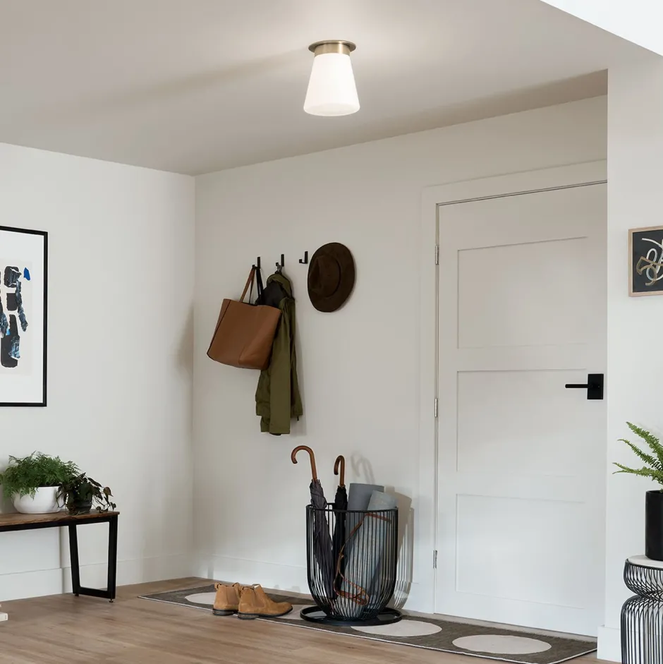 Dank ihrer geringen Größe passt die Leuchte auch in kleine Räume mit niedrigen Decken – ideal für Gäste WC, Ankleide und Eingangsbereich