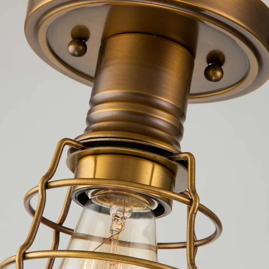 Elegante Metall Deckenlampe mit Käfig Schirm in Messing antik