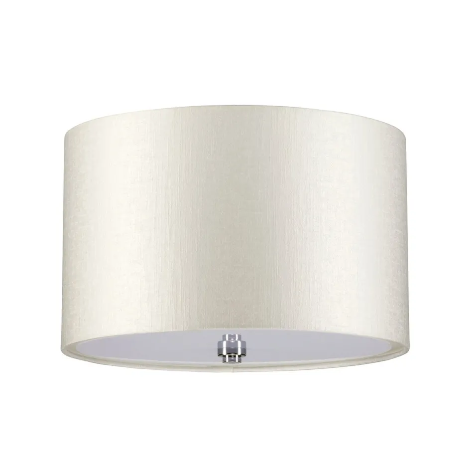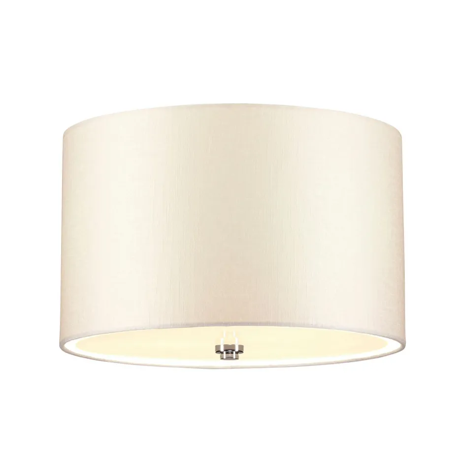 Runde Deckenleuchte mit Stoffschirm in Creme und Chrom