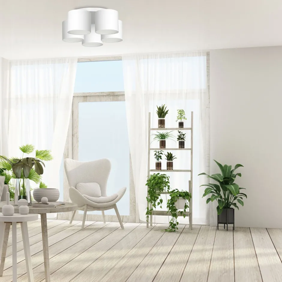 Zeitlose Deckenlampe aus lackiertem Stahl, Stoff und Kunststoff in Weiß