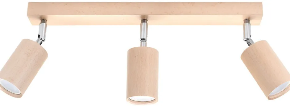 Schlichter Deckenstrahler aus massivem Holz in Chrom und Creme