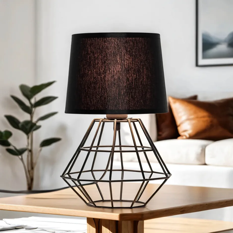 Kleine Tischleuchte mit Metall Fuß im geometrischen Frame Design