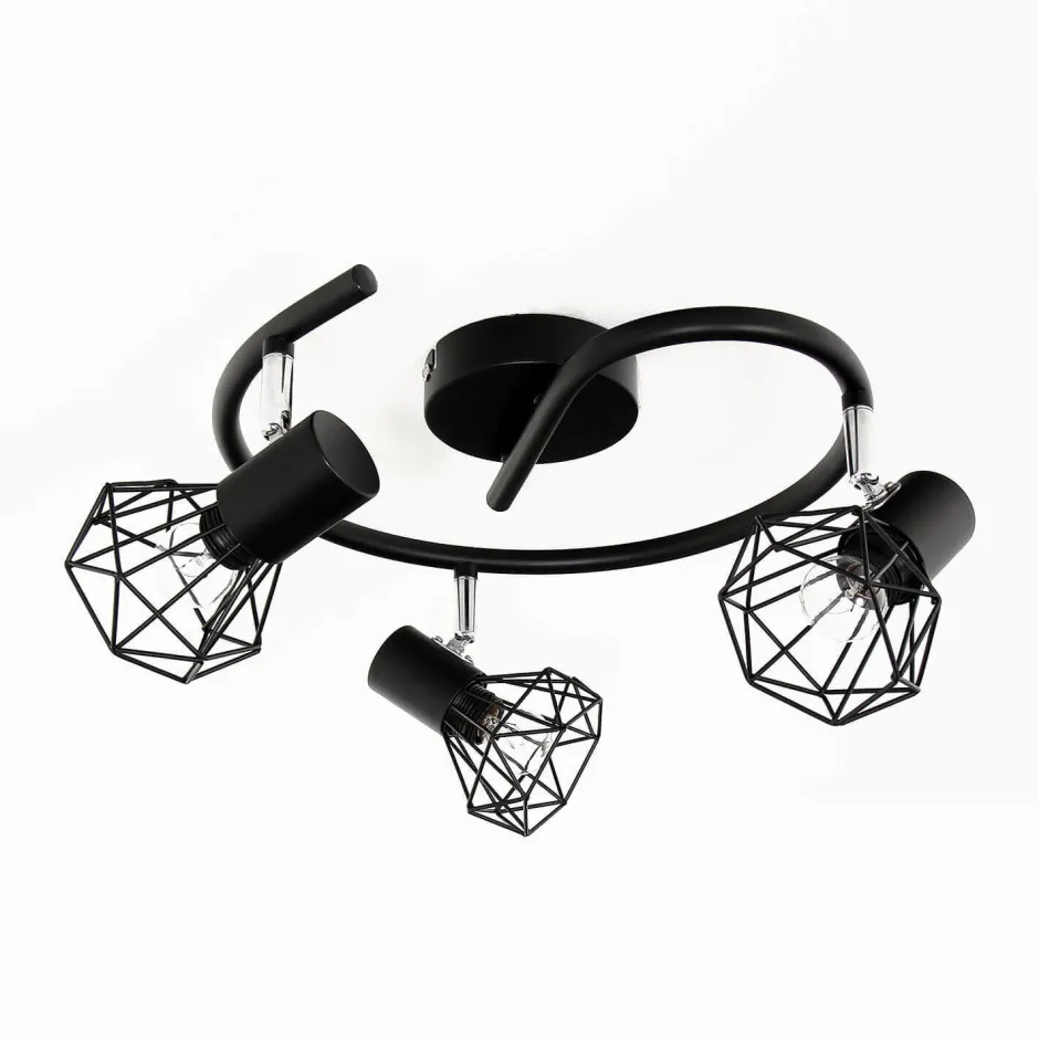 Vielseitige Deckenleuchte mit geometrischem Drahtschirm in Schwarz