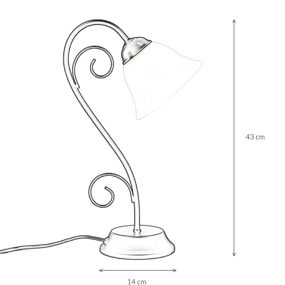 Der Schirm hat die typische Struktur von Alabasterglas und lässt das Licht besonders weich wirken – ideal als Schreibtischlampe und Nachttischlampe