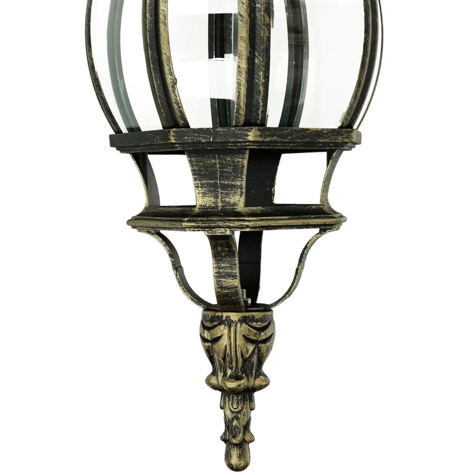 Die rustikale Außenleuchte in Gold Antik besteht aus witterungsbeständigem Aluminium und robustem Glas
