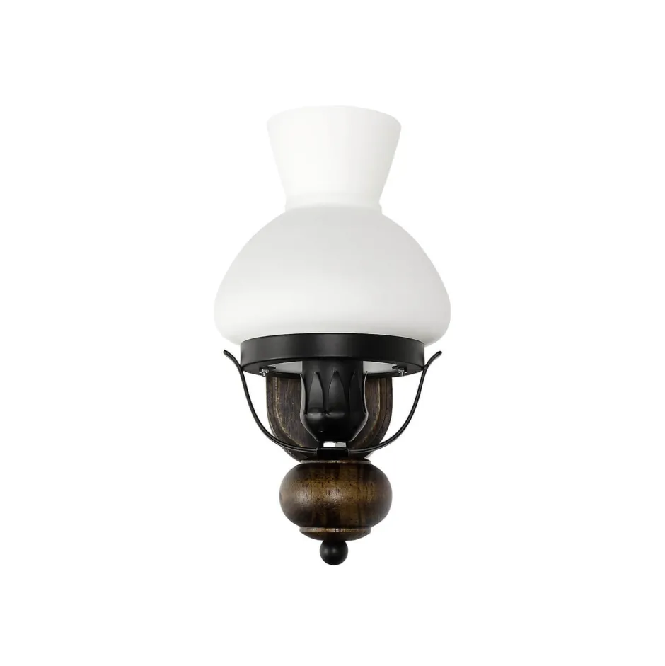 Urige Wandleuchte aus Holz, Glas und Metall im rustikalen Stil