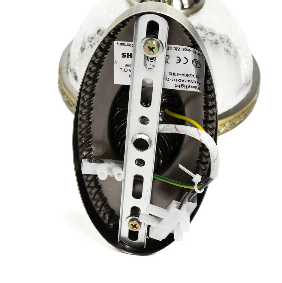 Kunstvoll gestaltete Ornamente zieren das Gestell der Leuchte und verleihen jedem Raum Eleganz