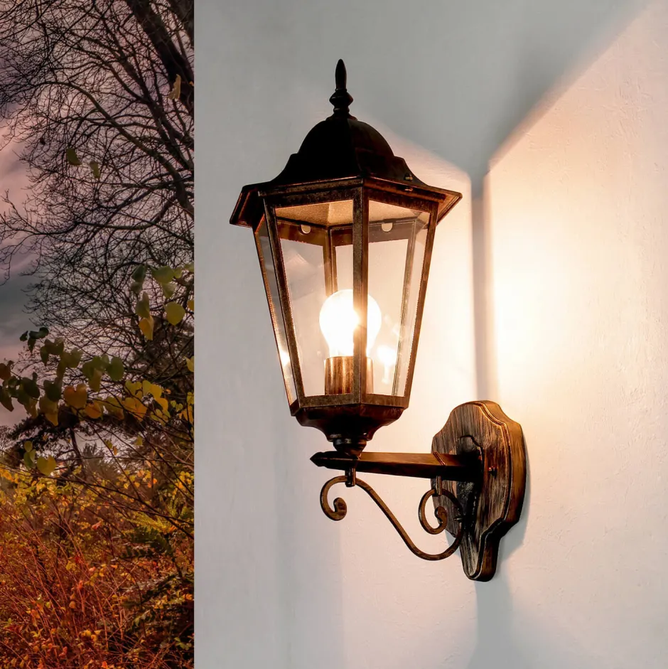 Rustikale Wandleuchte für Außen in Schwarz Kupfer