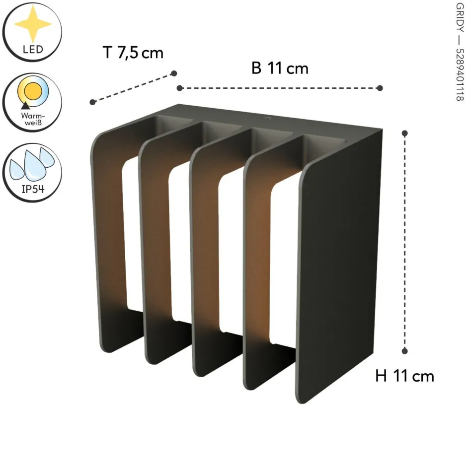 Moderne LED Außenleuchte für die Wand aus Aluminium in Schwarz