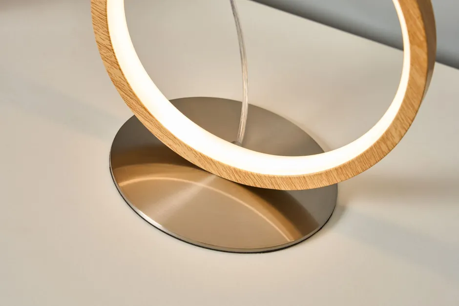 Moderne LED Tischleuchte aus Aluminium und Holz mit Sockel in Silber
