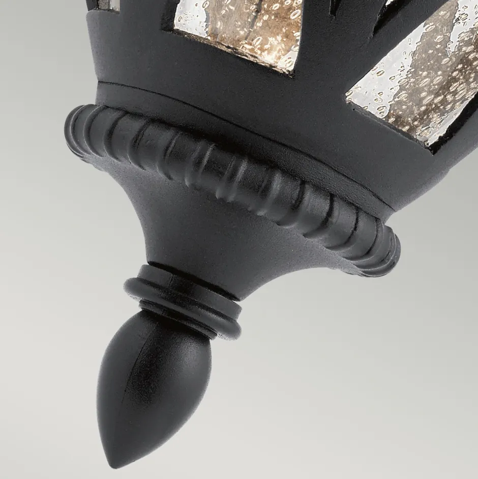 Fein gearbeitete Ornamente dekorieren die Außenlampe und verleihen ihr ein majestätisches Aussehen