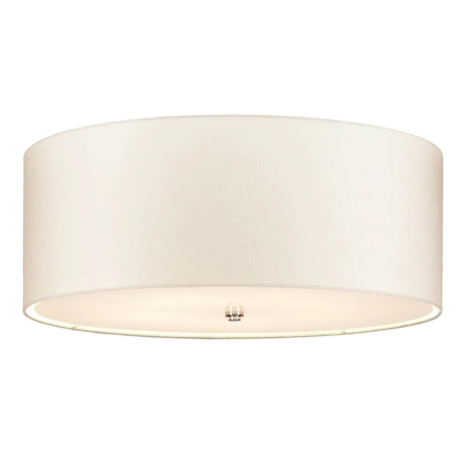 Runde Deckenleuchte mit Stoffschirm in Creme und Chrom