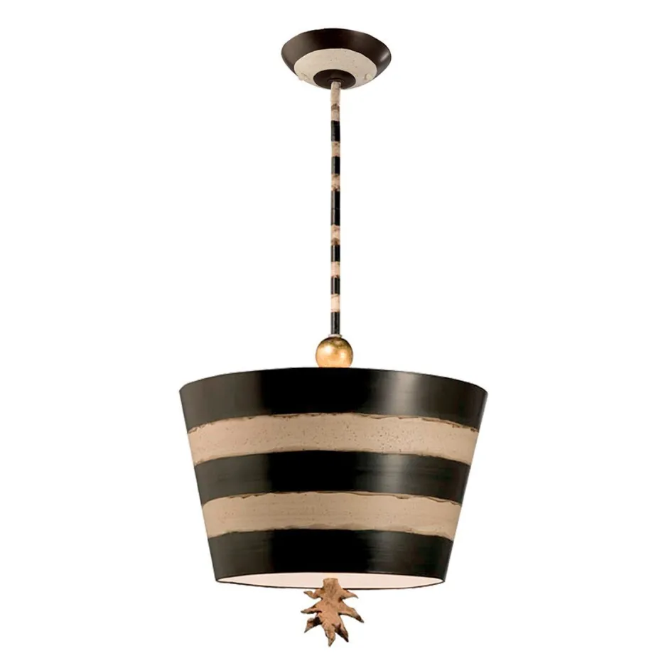 Die Farben Schwarz, Gold und Weiß dominieren die Deckenlampe und harmonieren mit vielen Wandfarben