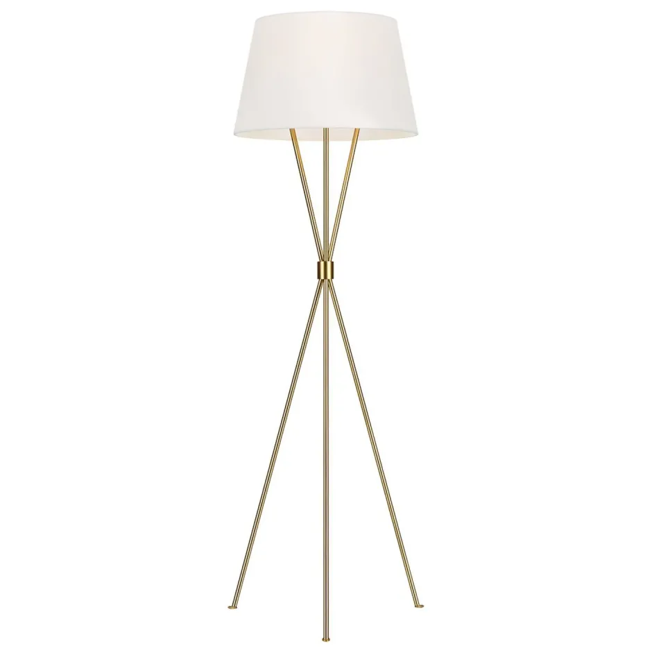 Kleine Stehlampe mit Dreibein Gestell in Messing brüniert