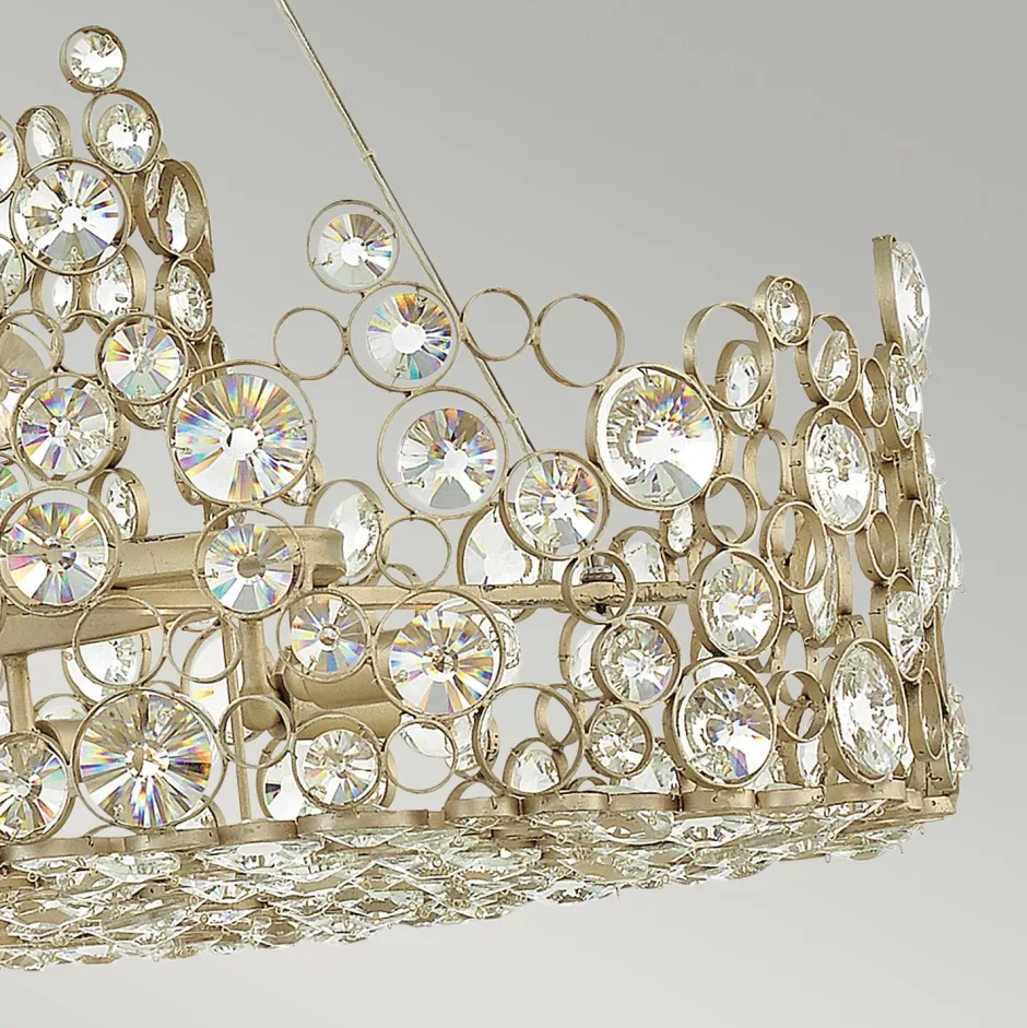 Eine Vielzahl an geschliffenen Kristallen setzen einen dekorativen Akzent und machen aus der Hängelampe einen außergewöhnlichen Lichtbringer