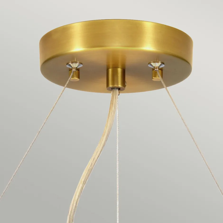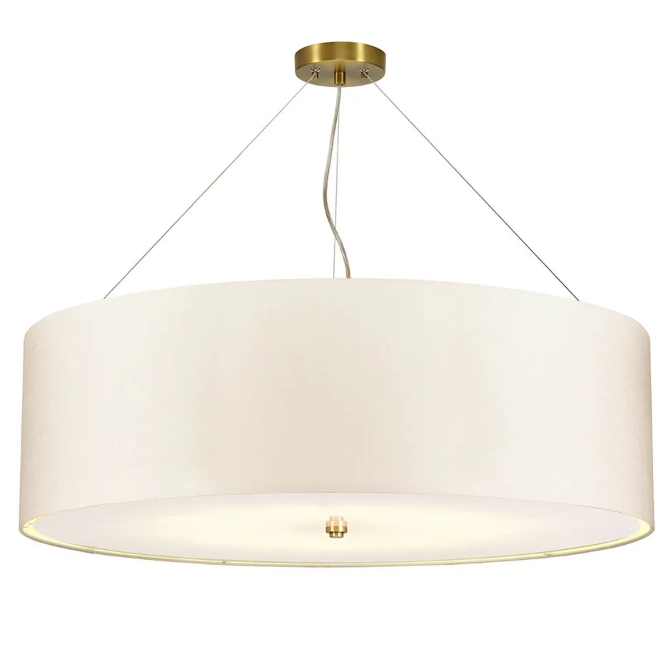Runde Hängeleuchte mit Stoffschirm in Creme und Messing