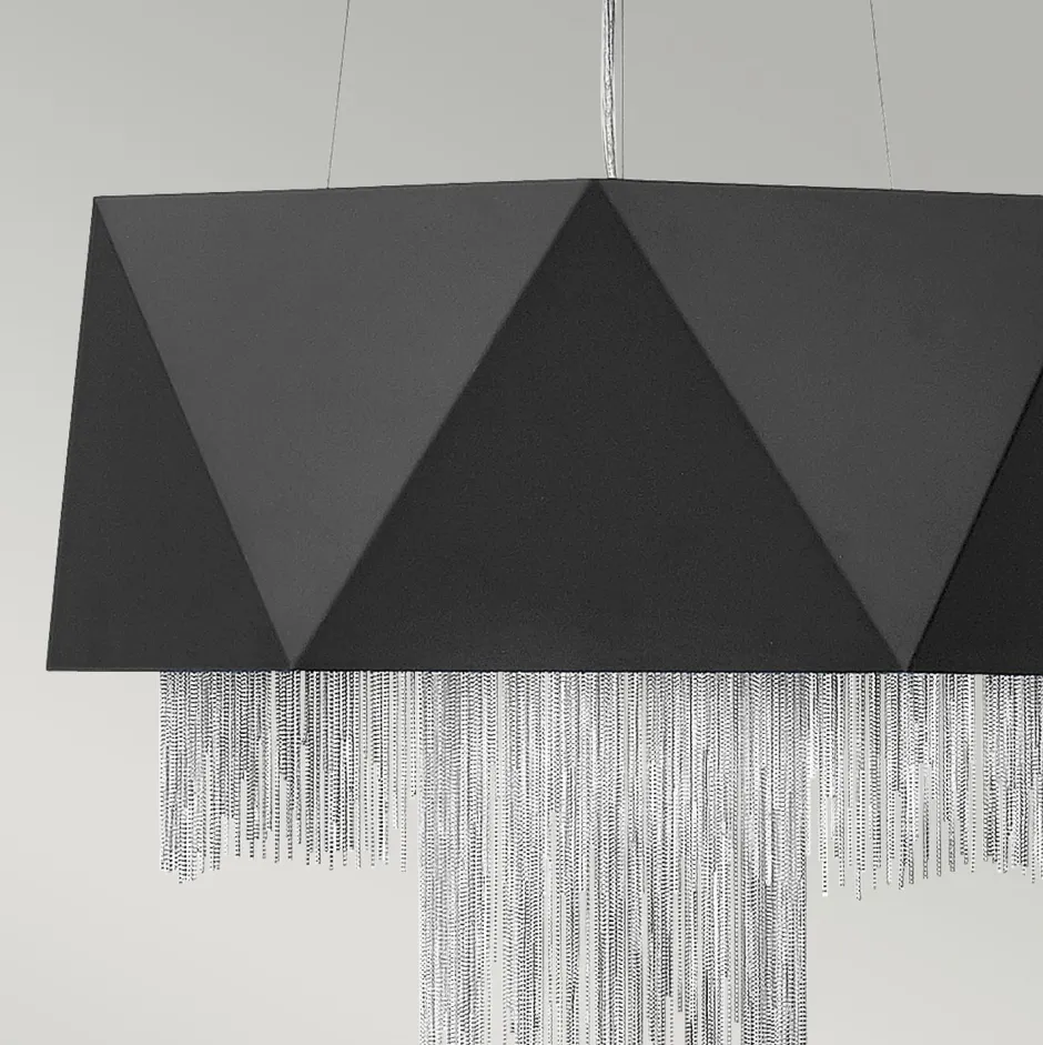 Die feinen Ketten in Silber setzen einen eleganten Akzent und bilden einen spannenden Kontrast zum matten Schwarz – ein elegantes Statement in jedem Raum