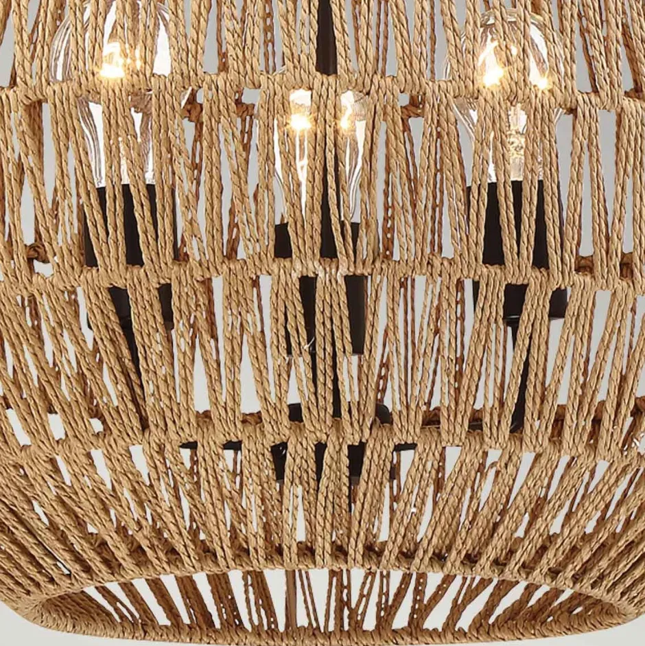 Runde Pendelleuchte mit geflochtenem Korb Lampenschirm aus Seil