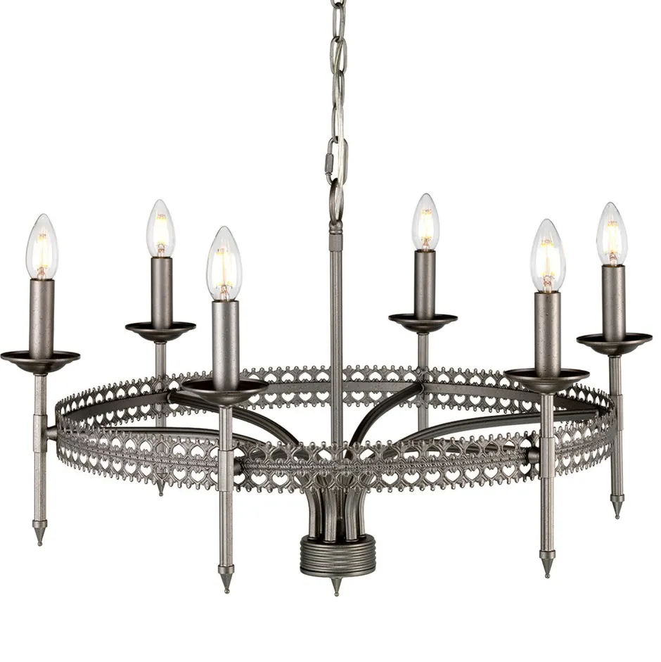 Ring Kronleuchter im mittelalterlichen Design mit 6 Flammen für Wohnzimmer und Esszimmer