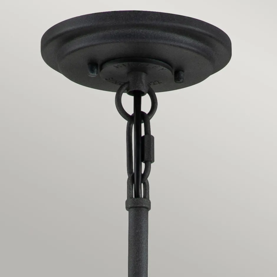Das offene, schirmlose Design setzt außergewöhnlichen Akzent, der aus der große Pendelleuchte einen besonderen Blickfang macht