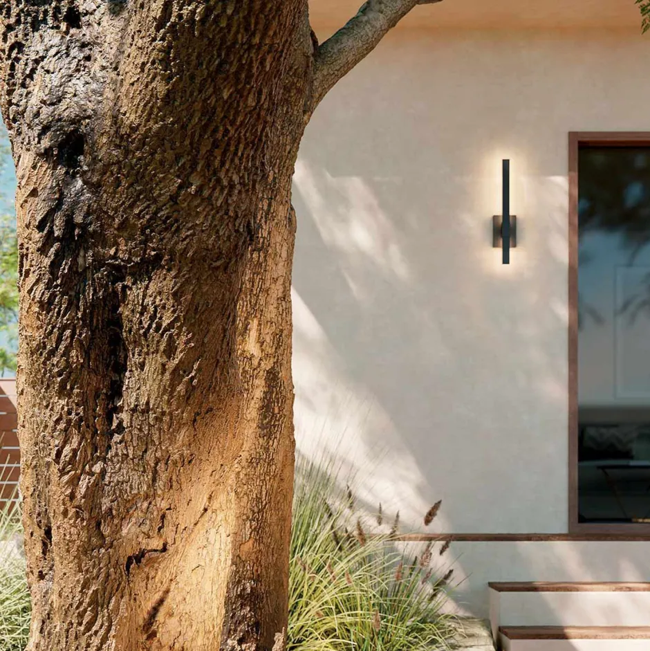 Schmale LED Wandlampe für außen in Schwarz