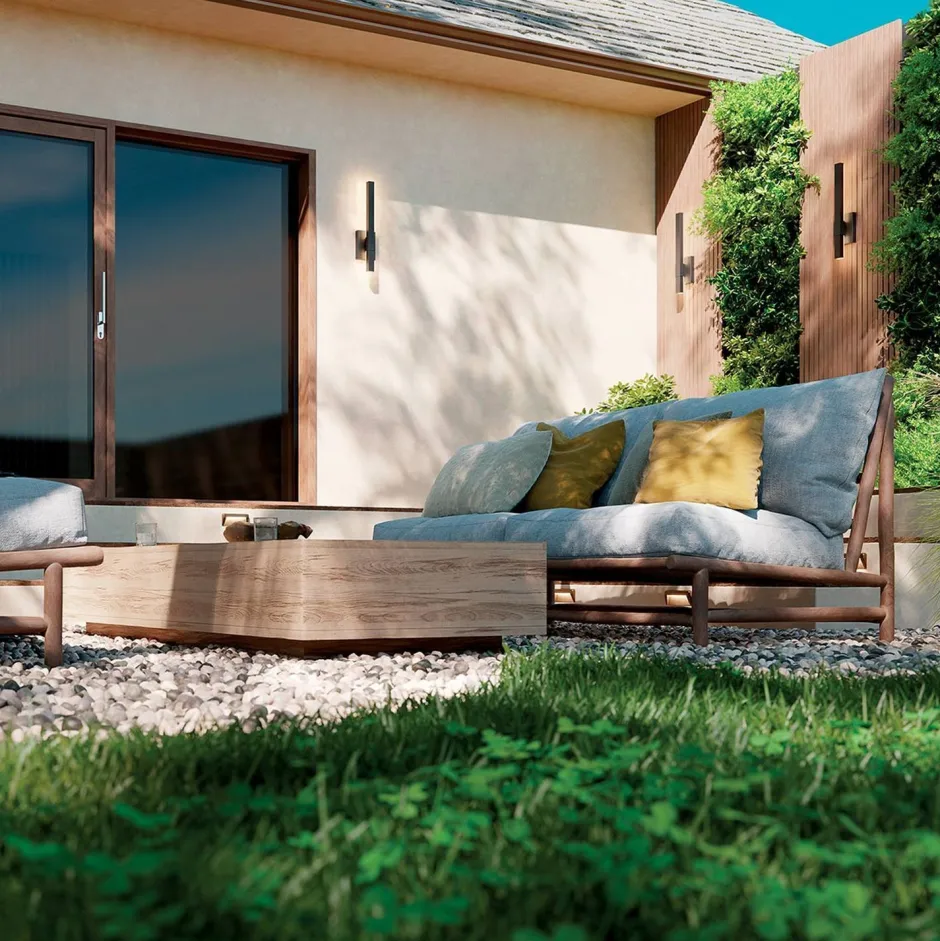 Die Außenwandlampe sorgt für eine indirekte Beleuchtung und setzt Balkon, Terrasse, Veranda und Fassade gekonnt in Szene – ideal für ein modernes Ambiente als Fassadenstrahler, Balkonlampe und Haustür Beleuchtung