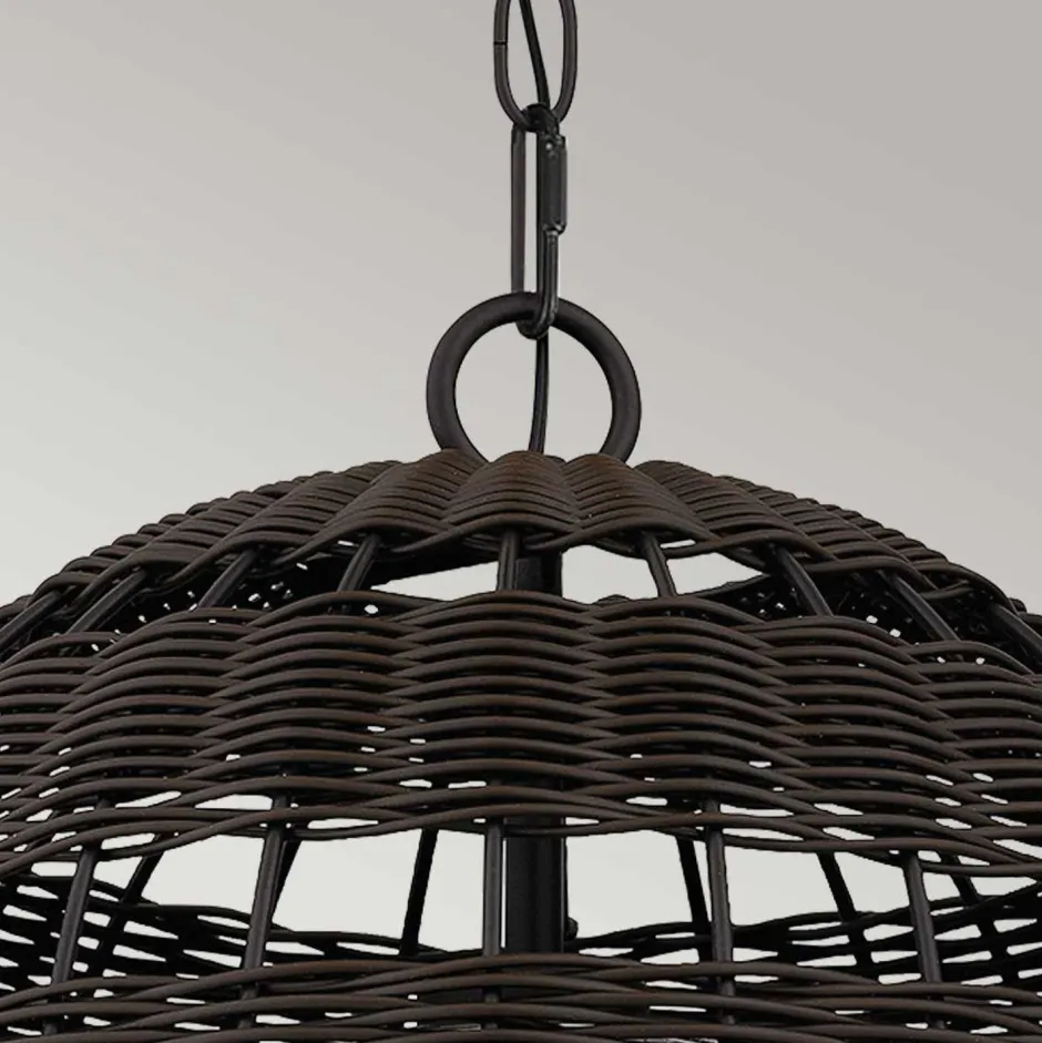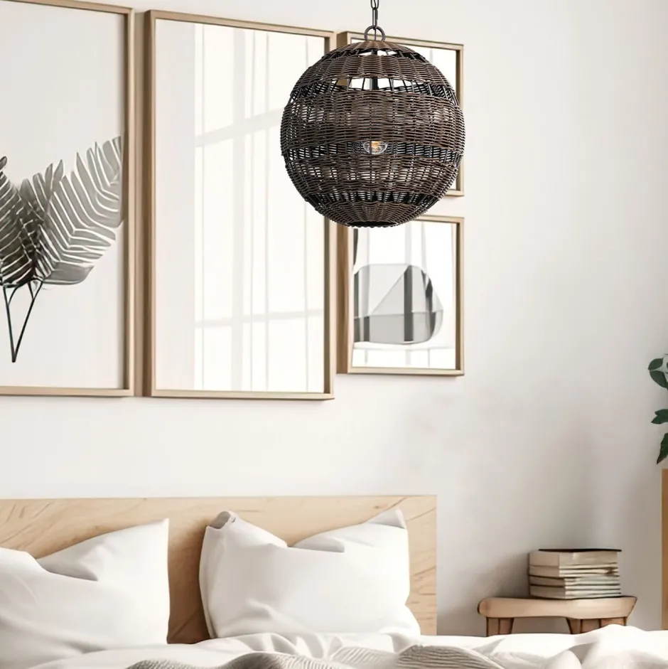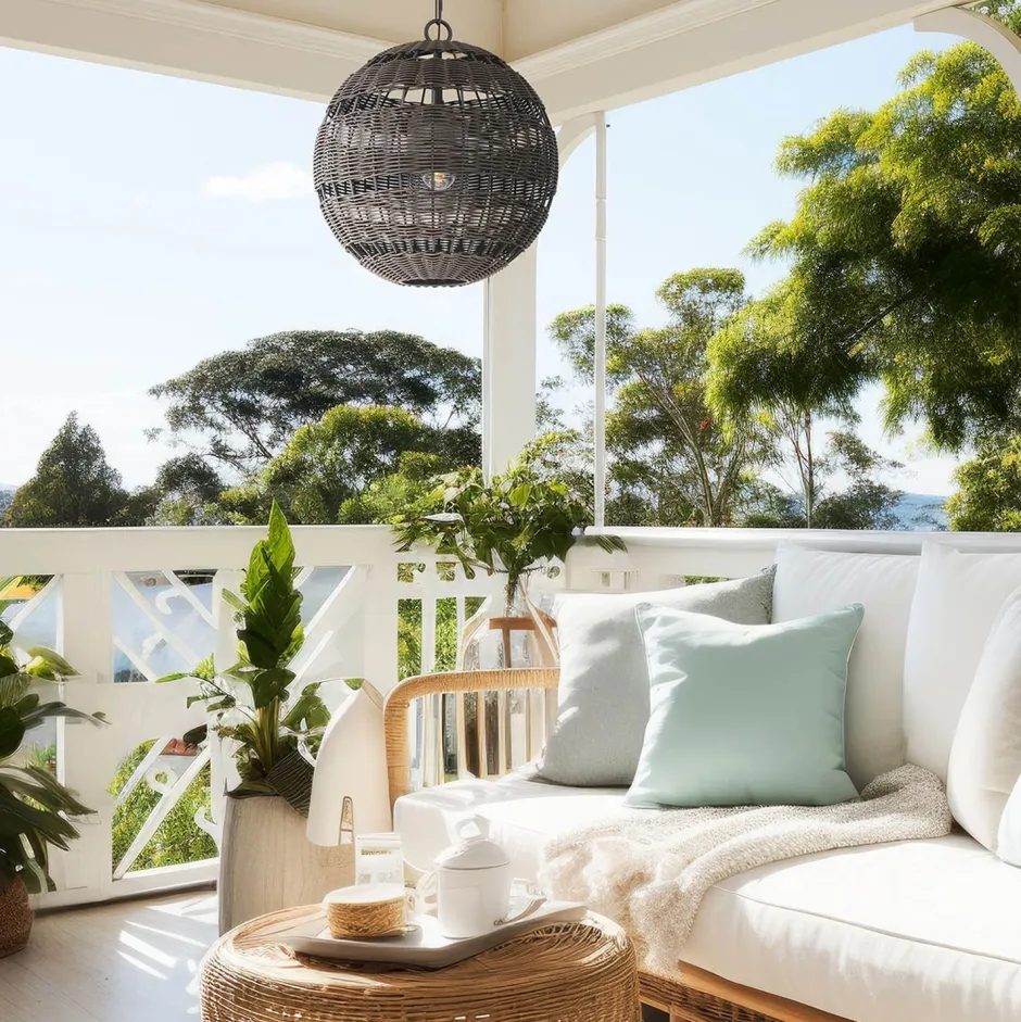 Dekorative Pendelleuchte für außen mit Kugelschirm in Schwarz
