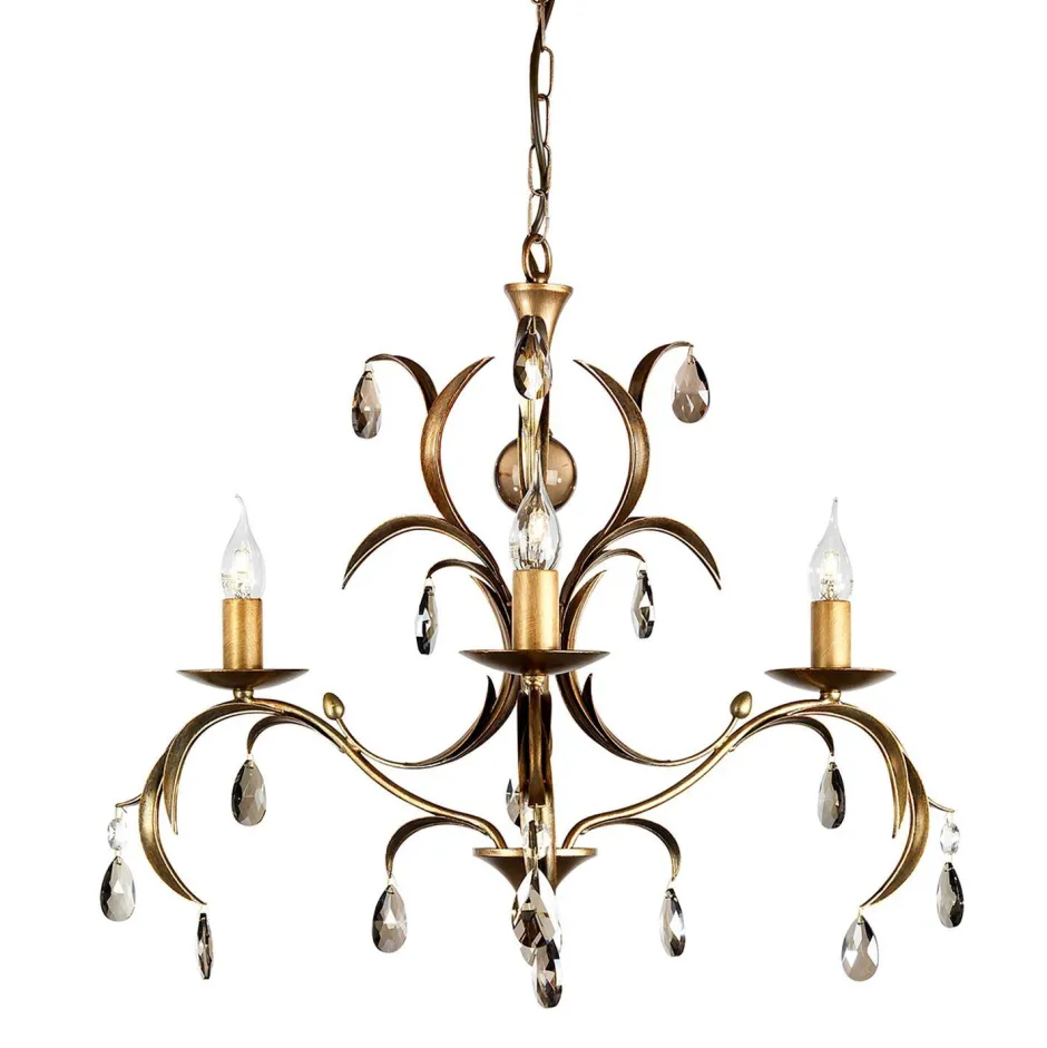 Kunstvoller Kronleuchter in edlem Bronze mit Glas Kristallen