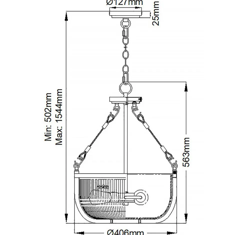 | Maße: | Breite: 406 mm | Hängetiefe: 502-1544 mm | Länge: 406 mm | Durchmesser: 406 mm | Höhe Schirm: 502 mm |