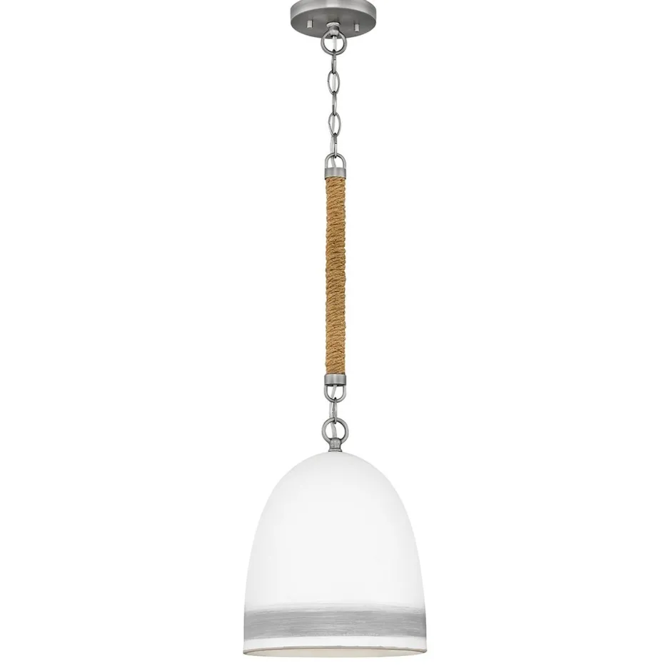 Schmale Pendelleuchte mit Keramik Lampenschirm und Jute Seil