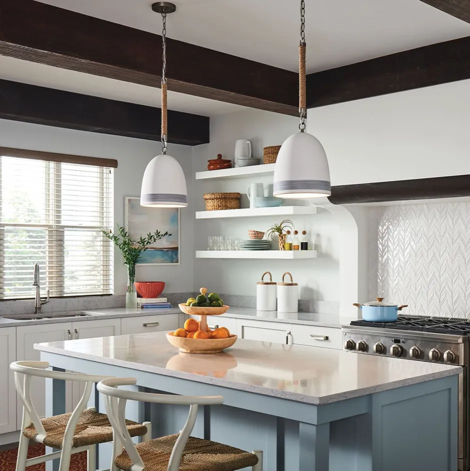 Die Hängelampe sorgt für eine zielgerichtete Beleuchtung nach unten – ideal über Esstisch, Kücheninsel und Tresen