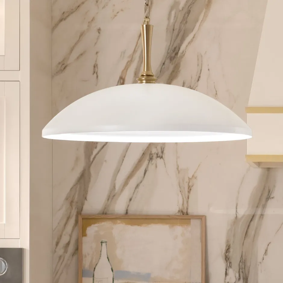 Stilvolle Pendelleuchte aus Metall in Weiß und hellem Bronze