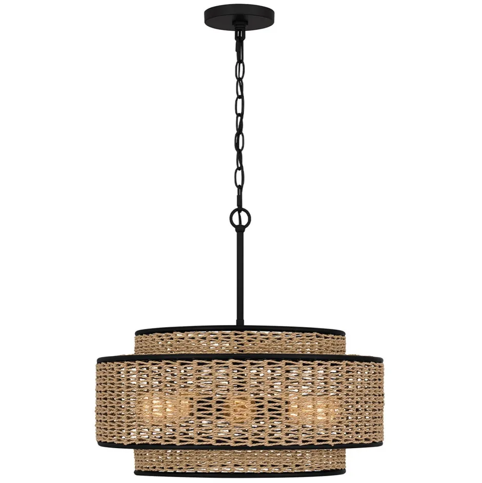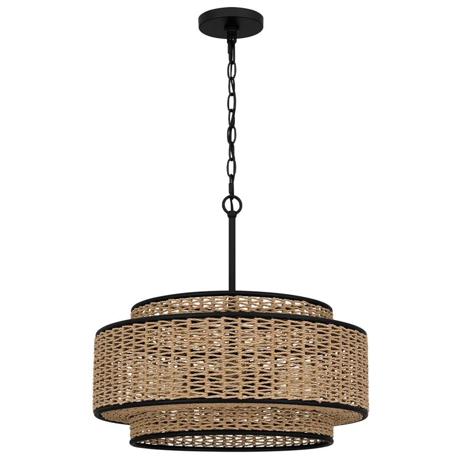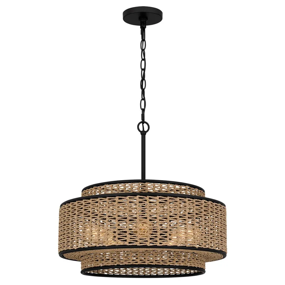 Moderne Boho Pendelleuchte mit geflochtenem Schirm aus Seil